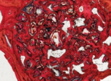 Nach 21 Tagen: Die erhöhte Mineralienkonzentration verbessert die Differenzierung und Proliferation von Osteoblastenim Defekt und beginnt die Bildung der extrazellulären Kollagenmatrix. 2, 4, 6