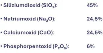 GlassBone® – Synthetisches Knochenersatzmaterial für beschleunigte Regeneration und Neubildung von Knochengewebe GlassBone® ist ein bioaktives Glas 45S5 der ausschließlich aus Elementen besteht, die natürlicherweise im menschlichen Körper vorhanden sind. Das bioaktive Glas 45S5 überzeugt durch seine besondere Fähigkeit, eine feste Verbindung mit lebendem Gewebe einzugehen und sich chemisch mit dem umgebenden Knochen zu vernetzen. Dieser natürliche Prozess unterstützt effektiv die Neubildung von Knochengewebe.
