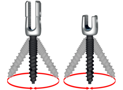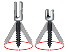 Design und erhöhter Halt im Pedikel durch Mehrfachgewinde.